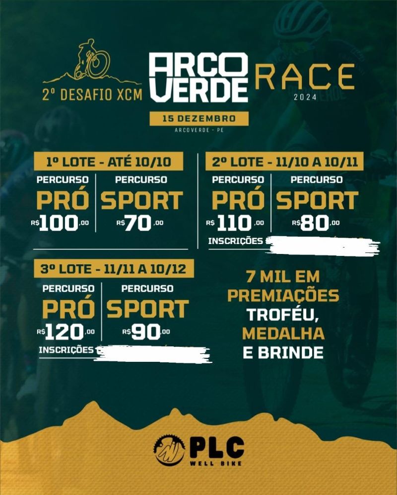 | Sub-30 Feminino | R$100,00 | R$110,00 | R$120,00 |