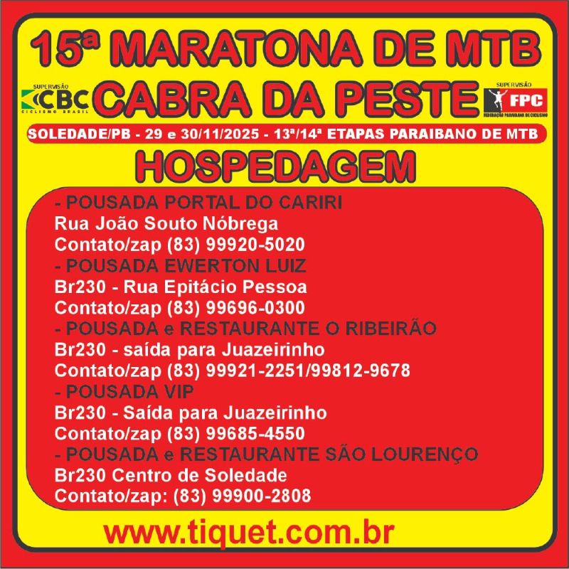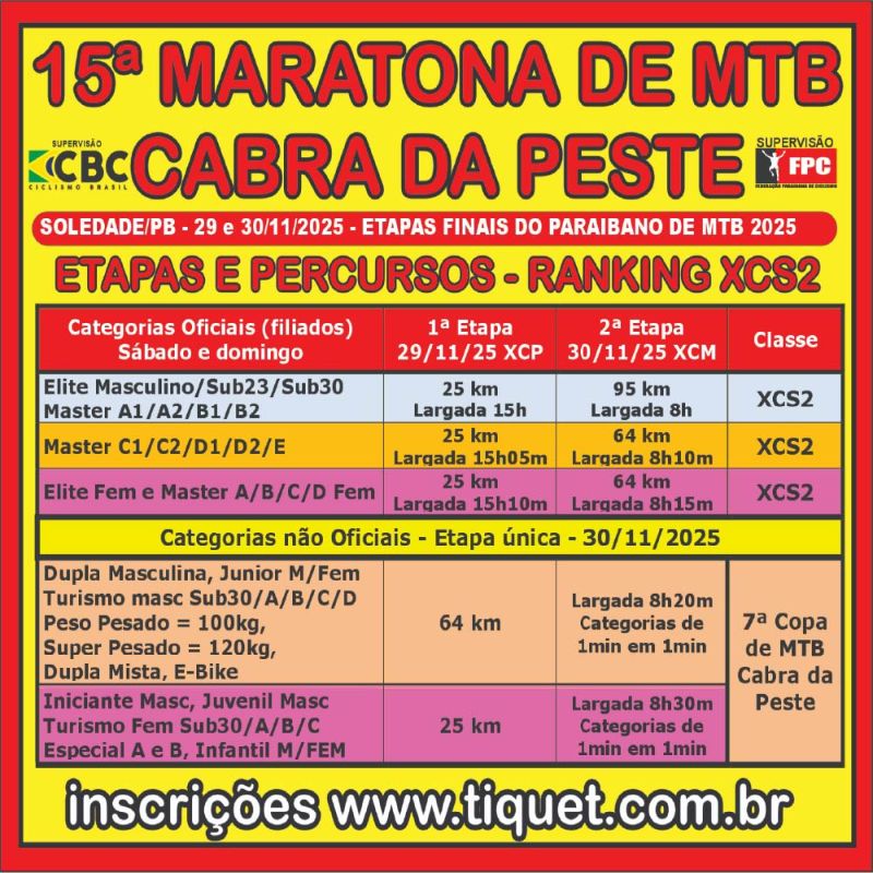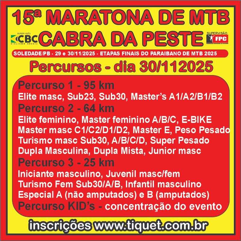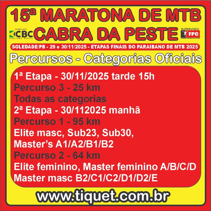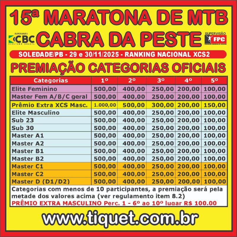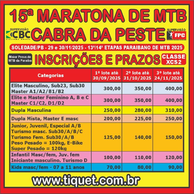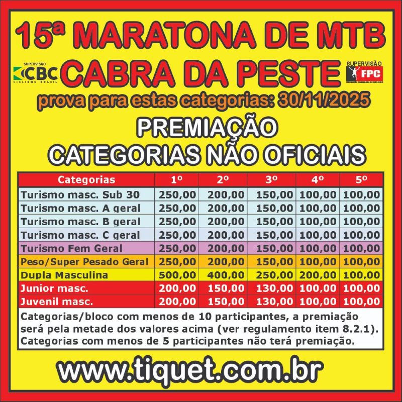 | Turismo Fem. Sub 30 | R$125,00 | R$140,00 | R$150,00 |